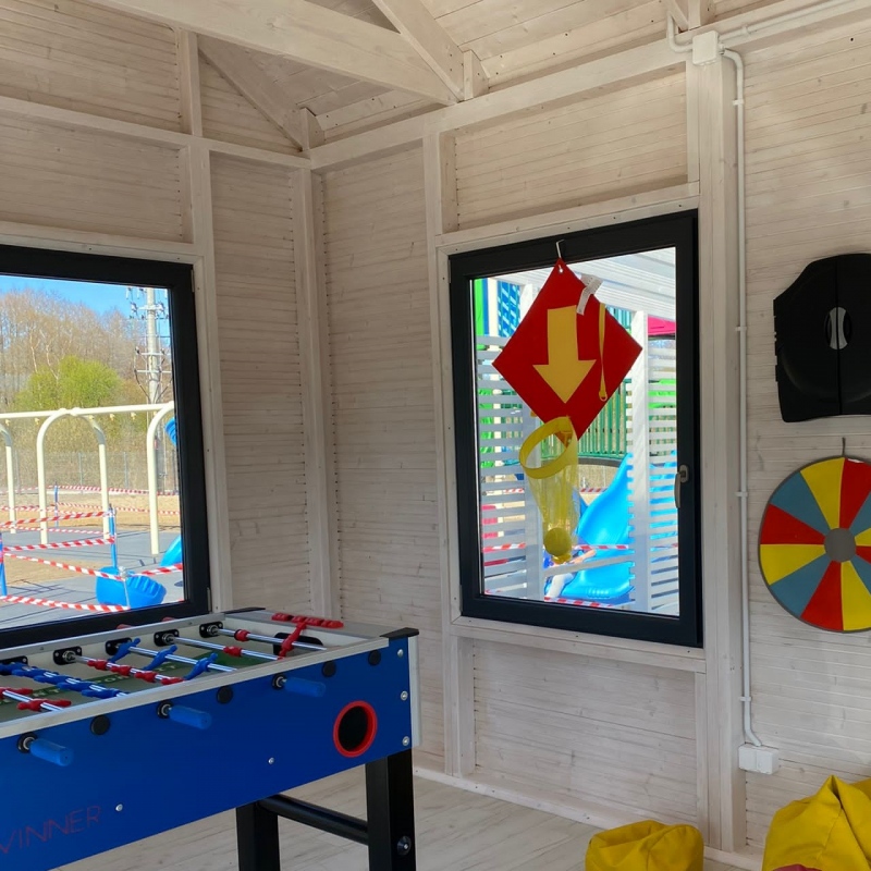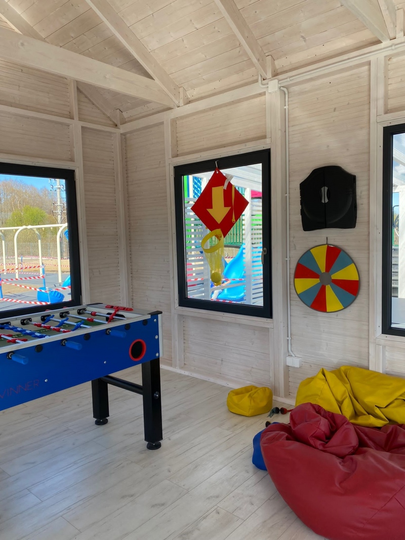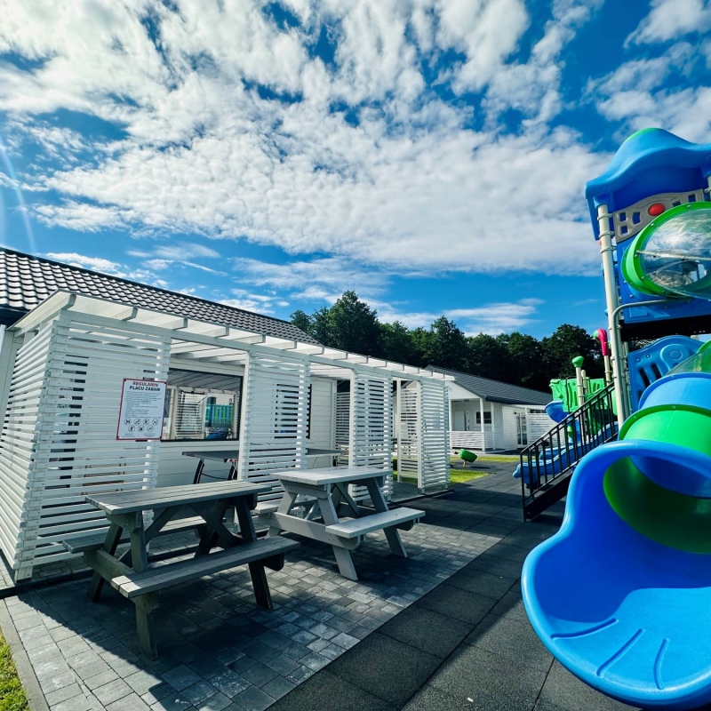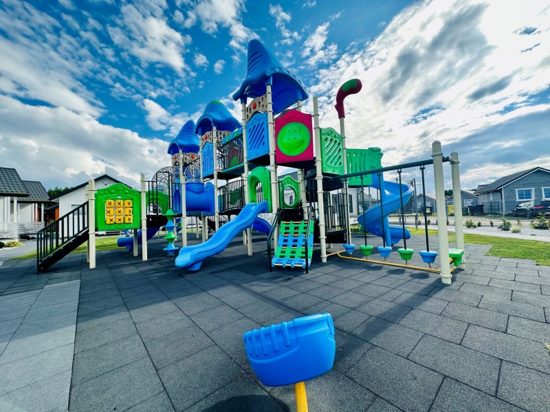 Cały kompleks domków jest ogrodzony i chroniony. Nasz obiekt to idealne miejsce wypoczynku dla rodzin z dziećmi. Bezpieczny i komfortowy. Z myślą o najmłodszych gościach przygotowaliśmy kolorowy plac zabaw SMERFNA KRAINA z atrakcjami dostosowanymi do dzieci w różnym wieku: