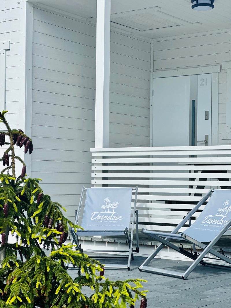 W każdym domku sprzęt plażowy do Państwa dyspozycji: parawan i leżaki. Uwaga: koc plażowy zapewniacie sobie Państwo we własnym zakresie.