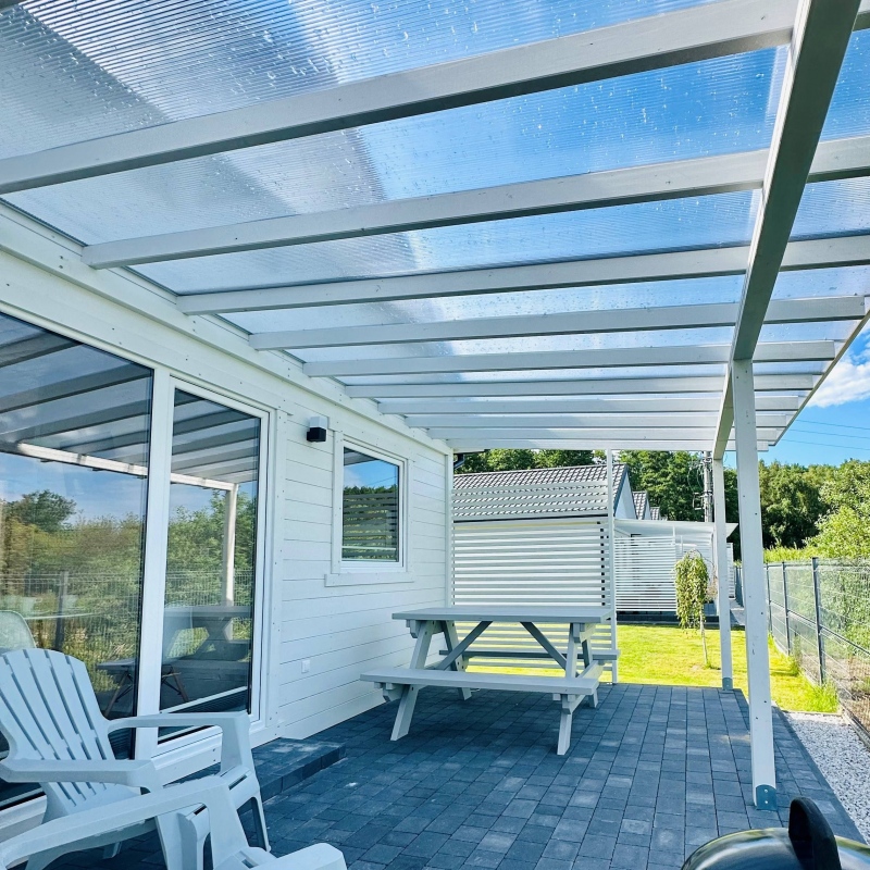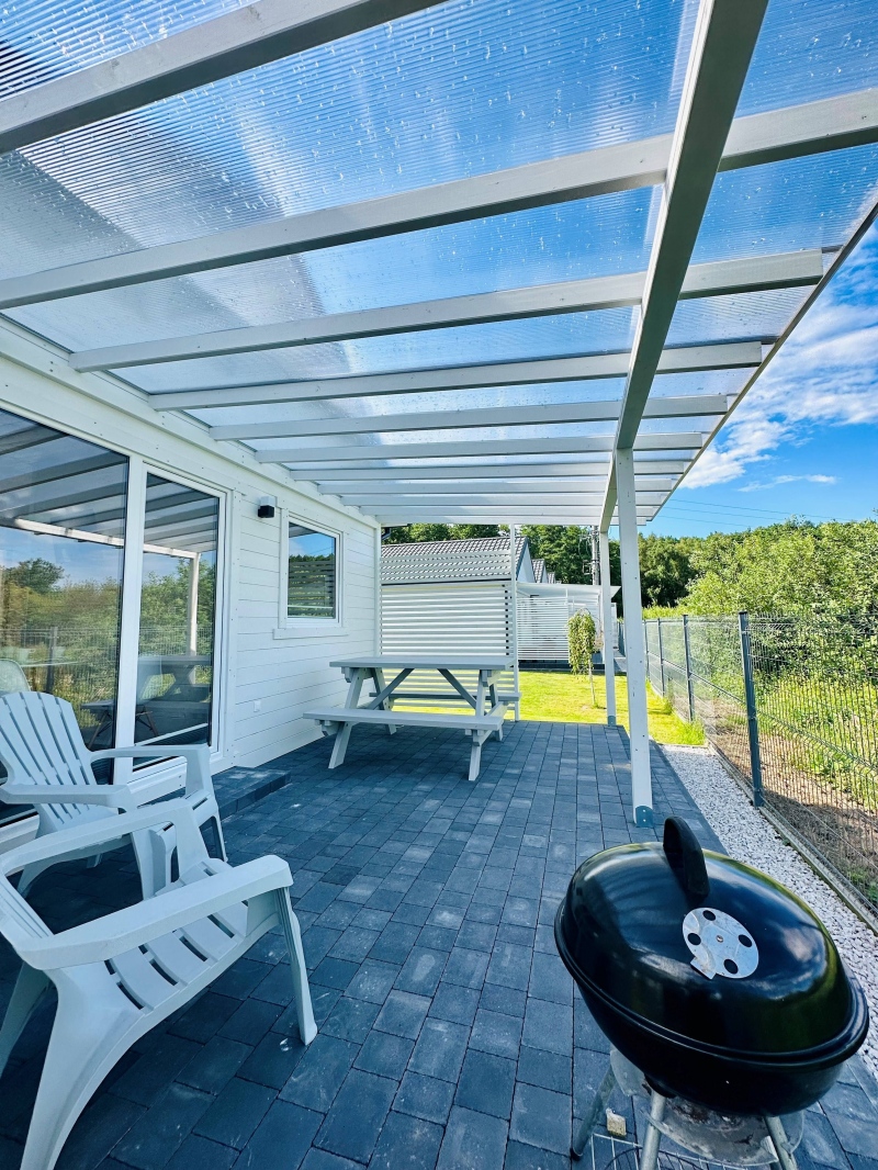 Domki parterowe (36m2) w kolorystyce białej z trzema pokojami w pięknej zielonej, parkowej części Dąbek. Każdy domek to dwie osobne zamykane sypialnie plus salon z aneksem kuchennym, łazienka i dwa tarasy: taras z przodu domku oraz taras wypoczynkowy z tyłu domku. Tu wygodne miejsce na leżaki, ławostół, grill. Wygodnie i estetycznie urządzone. Wszystkie domki wyposażone w klimatyzację z funkcją chłodzenia lub grzania. Domki z widokiem na plac zabaw! Do morza 15 minut spacerkiem. Dla dzieci super plac zabaw - piękna konstrukcja Smerfna Kraina z torami przeszkód i zjeżdżalniami - atestowany plac zabaw! a w nim ścianka wspinaczkowa, zjeżdżalnia, taras widokowy oraz świetlica Mini Club z grami, zabawkami i tv.