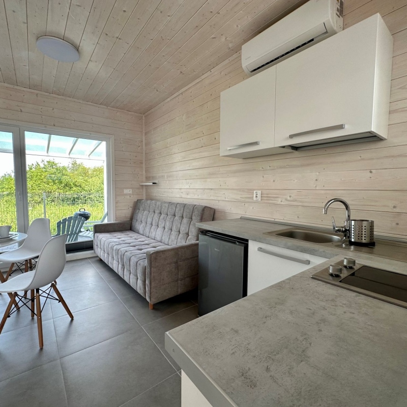 Zapraszamy na wypoczynek nad morzem do nowych klimatyzowanych komfortowo urządzonych PARTEROWYCH domków drewnianych usytuowanych w miejscowości uzdrowiskowej Dąbki.