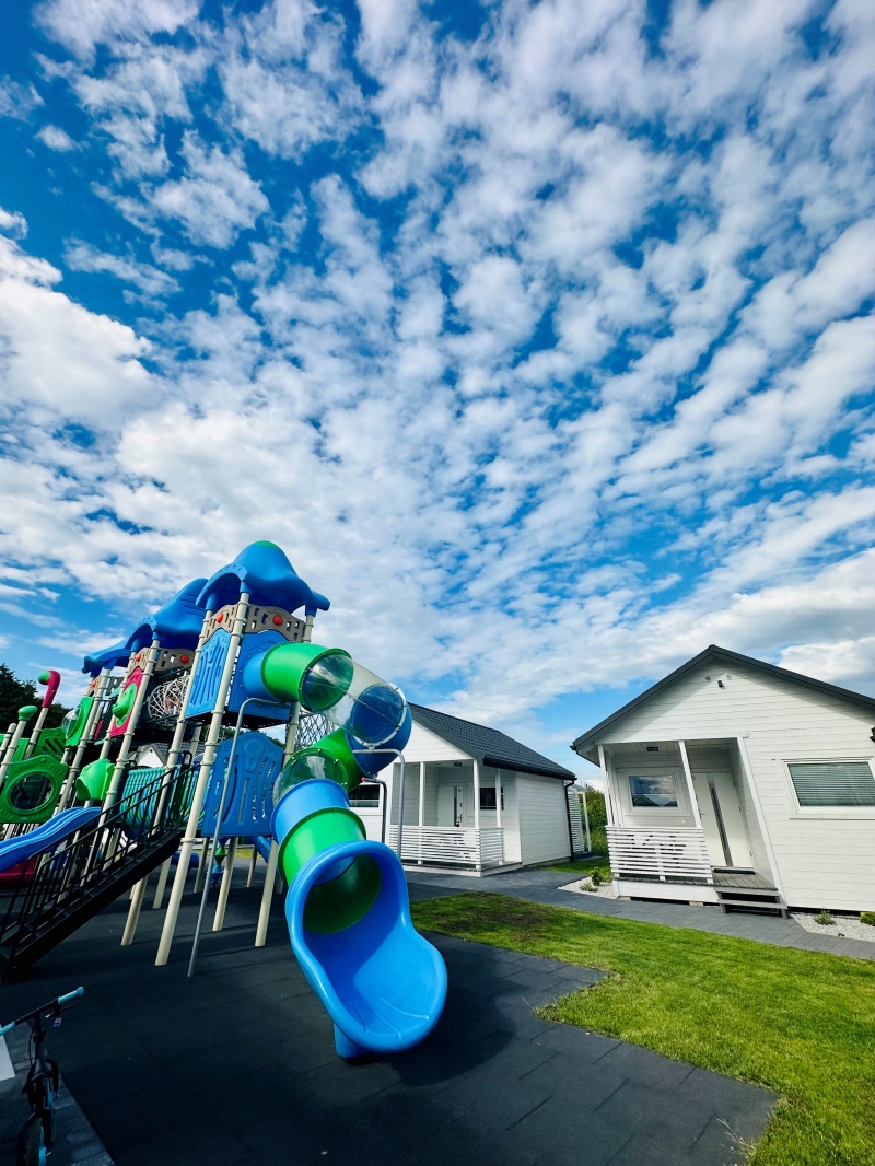 Cały kompleks domków jest ogrodzony i chroniony. Nasz obiekt to idealne miejsce wypoczynku dla rodzin z dziećmi. Bezpieczny i komfortowy. Z myślą o najmłodszych gościach przygotowaliśmy kolorowy plac zabaw SMERFNA KRAINA z atrakcjami dostosowanymi do dzieci w różnym wieku: